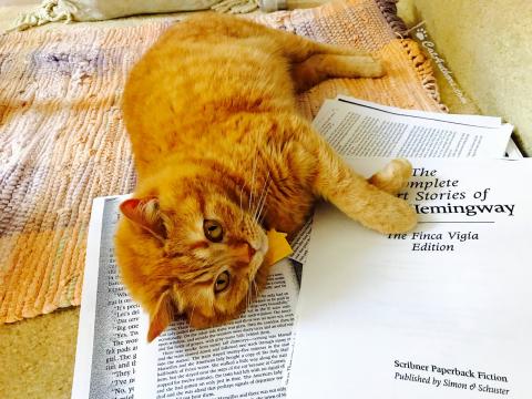 I don't have to "read" stories to "know" 'em. All I have to do is rest on 'em and I"know" 'em 'cause I "absorb" 'em. Betcha' you wish you could do that. But everyone knows that cats have heightened, other-worldly sensory perceptors. Meowmuh has to get her glasses, sit down & read the story word by word. Not me!