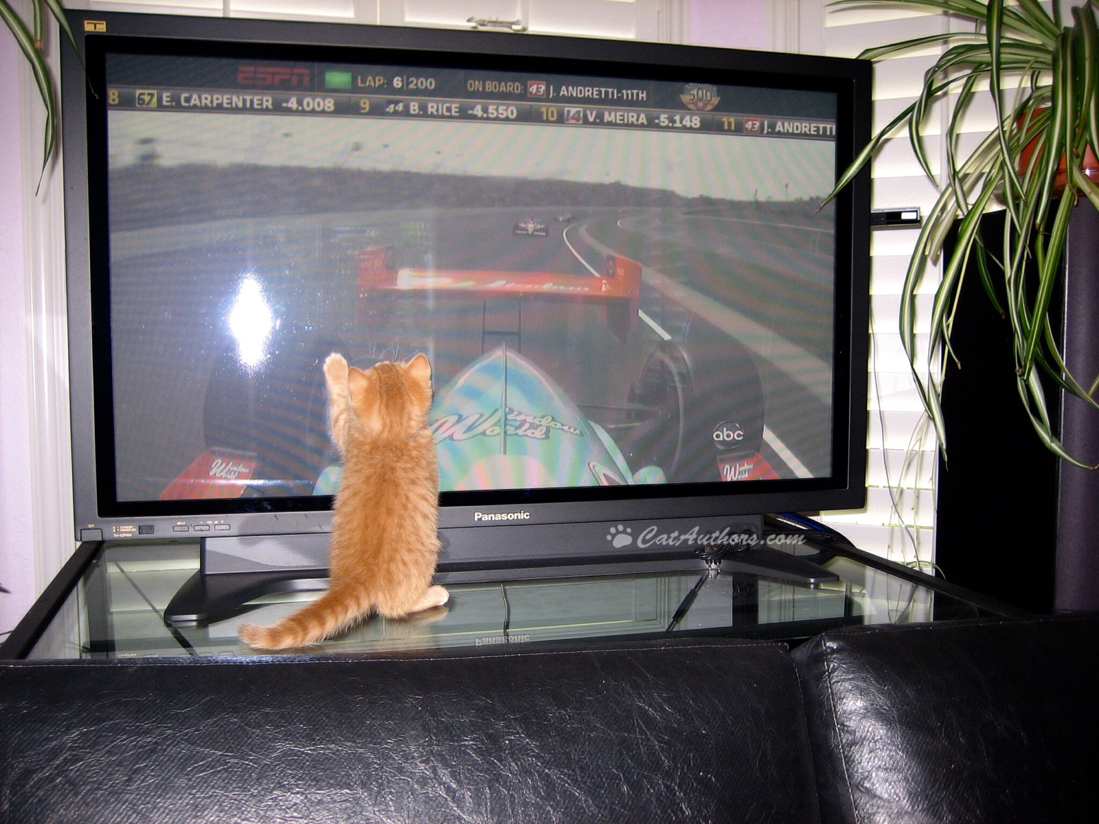 My paw's up & ready. Here comes one. Oops. I'll get the next one. I'm just a baby kitten in this 2011 pic. But now it's 2018 & I'm all grown up. I'm lookin' for Danica Patrick. She's fast! She's the only lady driver out there. Sunday, May 27 is Danica's last race. She retired from NASCAR & now from Indy. What's the point of tryin' to catch a car-thingie if it isn't Danica's? GO DANICA!!! WE HOOMAN & CAT LADIES LOVE YOU!! Be sure to Google her. She's a purr-fectly bootiful, classy lady-hooman! Yep, all of the Cat Authors & Meowmuh are Danica fans!