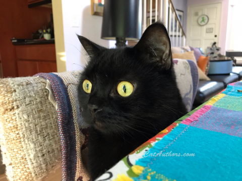 Yes, I'm sitting in a dining room chair at our dining room table watching the birds & butterflies in our backyard. There are three new cats that walk through our yard. They must be watched. Very carefully. One looks like Spirit. Meowmuh doesn't let us out of our house unless we're in our carriers, our stroller or on a leash/harness. She says we don't understand traffic & cars plus there are coyotes where we live. They might want one of us for lunch someday. That's skeery. Being inside isn't so bad. We find all sorts of things to play with. For example, watch my next video, "BLACK CATS & BOBBYPINS"