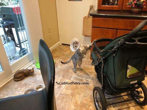I've measured & measured & measured. Don't think I can get up in there right now. But, trust me, I will jump into my stroller. I can do it. I will do it. I can do anything I set my mind to. My sibs know it, Meowmuh knows it & I bet you do too.