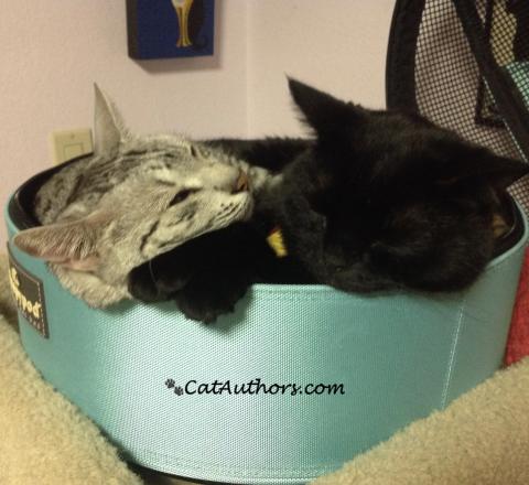 It's a rainy day in 'Sunny, Southern California' -- nothing to watch -- no birds, no leaves, no squirrels, no racoons, nothin.' We listened & watched rain drops 'til we couldn't keep our eyes open any longer. Meowmuh said we were clearly hip-no-tie-zed. We don't know what that means but we fell into a serious sleep. Spirit: "I just wish Inkee-Bear would stop that stupid high-pitched sigh that he makes with every breath. Keeps waking me up."