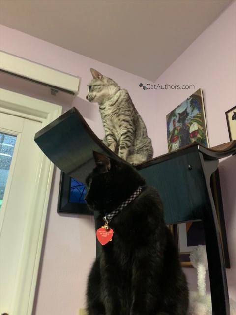 Spirit: Remember the neighbors' cats that come through our back yard? Inkee-Bear: Yes.The beige ones with the brown faces. Spirit: Yes, those are the ones! Inkee-Bear: They must have a pet rabbit cause a white rabbit was chasing them the other day. Spirit: Yeah, that was funny. First the cat chased the rabbit, then the rabbit chased the cat. Our hooman saw it & laughed. Inkee-Bear: Maybe one of those can be your Valentine. Spirit: Maybe but DEFINITELY not the rabbit!
