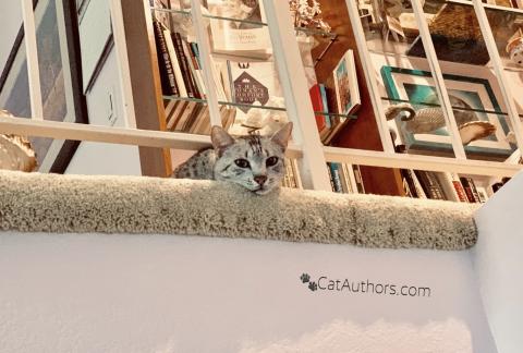 I'm watchin' my hooman from our loft. I told her that I want to go outside! She said no -- she's busy -- hoomans say things like that. So, I wanna' see just how busy she really is! Know what I mean? So, I'm watchin' & puttin' on my best 'sad sack' face -- it works sometimes. The object is to make her feel bad, real bad -- & guilty. I'm sure I can do it. I've done it before. Besides, it's worth a try, right?