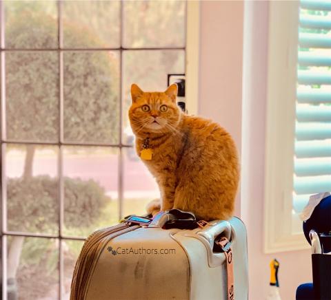 Our hooman was gone for 5 whole days in May! Can you believe it? Now that she's home, it's time for her to get with the routine. You know -- feed us, brush us, play with us, cuddle with us, put Spirit outside in his stroller, clean the litter boxes, vacuum up our hair and then unpack. And, when doing the laundry, please do our blankies too. I'll be perched here just in case reminders are needed. Oh, yeah, welcome home!
