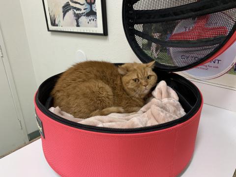 If you think I look happy, then you need to see your eye doctor. I don't like these visits, never have, never will but at least the people here are nice. I don't like having my toenails cut but our hooman says we gotta.' She helps us with Feliway spray & treats. Plus, we can stay in our Sleepypods even when they cut our nails. It's safer that way if you know what I mean.