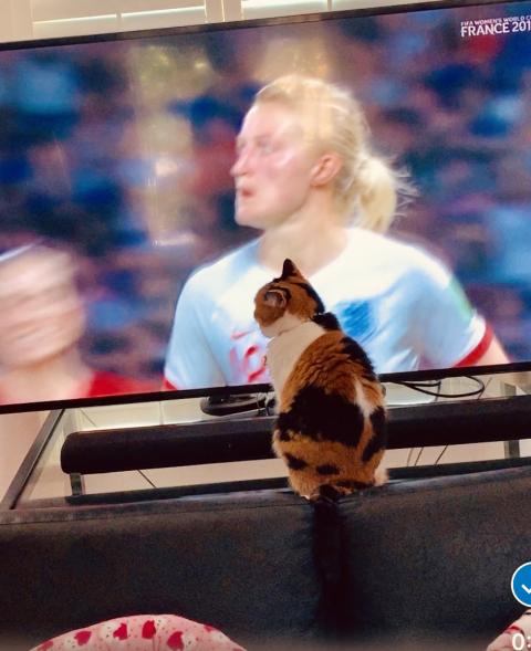 Doesn't everyone watch TV this way? You know, nose-to-screen? Team USA just won FIFA"s World Championship! Is that cool or what? Congratulations ladies!! You were purr-fect! And may you win many, many meowr!