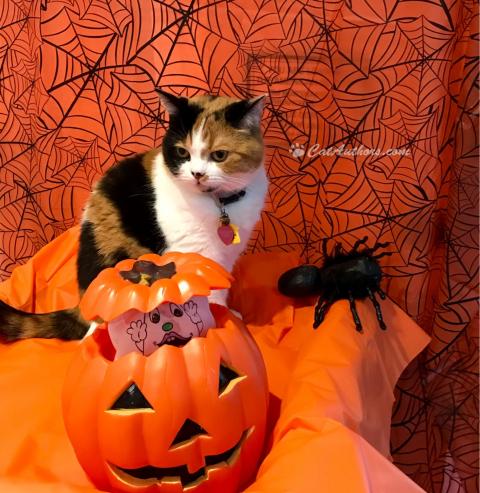 Be forewarned all you Tricksters & Tweeters, you come knockin' on our door, we'll answer but we cats aren't given' up any treats! No siree! All 4 of us agree on that!