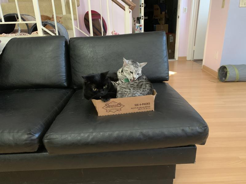 GRACEE: Guess who's got the box now. Poor Inkee-Bear. He loves peace and Spirit's middle name is clearly NOT peace. Inkee-Bear's pain is my gain if you know what I mean. Stay home, stay safe and remember, if you do go out, arm yourself -- with not just your mask but gloves for your paws too. Especially if you're gonna be swatting anyone, I mean anything.