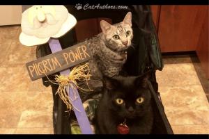 SPIRIT: I'm a pilgrim -- I pilgrimaged from a foreign land -- Egypt! I'm an Egyptian Mau. INKEE-BEAR: If you're from Egypt, then I'm from Scotland cause I'm a Scottish Fold. Duh. You came from Kansas, remember? You flew from Wichita to Dallas to Los Angeles & our hooman brought you to OUR home. SPIRIT: Kansas is in Egypt! INKEE BEAR: Not. Sigh. I give up.