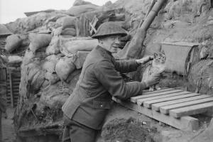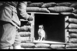 Per an article on 8/22/2014 by Bruce Strauss: "Cats were a common sight in the trenches & aboard ships where they hunted mice & rats. Beyond thier 'official' duties, they were also embraced as mascots & pets by the soldiers & sailors with whom they served. An estimated 500,000 cats were dispatched to the trenches where they killed rats & mice; some were also used as gas detectors." THIS PIC IS: "A GUNNER WITH THE REGIMENTAL CAT IN A TRENCH. CAMBRIN, FRANCE, Feb 6, 1918 (IWM)"