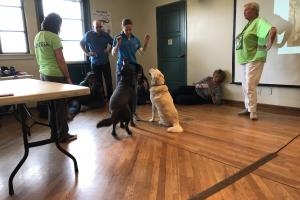 This black lab puppy is 5 months old. He'll be with his foster hoomans for 15 months. They've fostered prior guide dogs. He must go everywhere so he becomes used to the world--all noises & smells on streets, subways, planes, taxis, elevators, hospitals, animals, other hoomans & so much more. Then he'll go to Guide Dog School where he'll be trained to assist & protect his blind hooman in ALL situations. Part of the training was 'intelligent disobedience' also known as the dogs using their judgement/reasoning powers. You might want to read the book to understand.