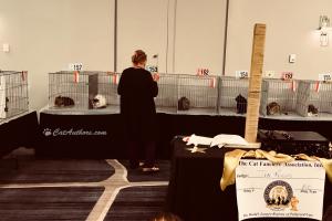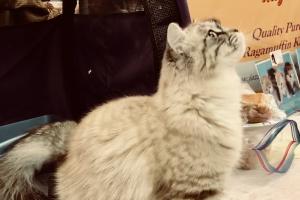 Ragamuffins are a laid-back breed -- not like me. These cats, like Ragdolls, make good therapy cats because they (well, most of them) completely relax when hoomans hold them. Hoomans like that. This is one of the cats being judged at the Cat Fanciers' Cat Show in Houston, Texas. Meowmuh said she spent hours there looking at all of the cats and talking to their 'staff" (caretakers).