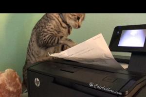 My job is to help Meowmuh however & whenever I can. So, here I am. Helping. I'm a real 'stand-up' kind of guy, as you can very well see. I'm standing watch while Meowmuh prints the Power Point presentation for her training--a web something or other. What? Oh, Inkee-Bear just said it was a 'webinar.' I hate printers. You gotta' watch 'em REAL CLOSE or they'll get ya'! You'll see in the video.