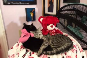 We got tired waitin' on Valentine's Day. Valentine-Bear said it would be soon but that might be fake news. So, we're doin' what all cats do -- cat-nappin' & dreamin' of boxes of treats and who will be --well, who wants to be our Valentine this year. Spirit, although he's an indoor guy, has been on the look-out for the new, little outdoor girl-cat that looks just like him. Maybe he'll ask her to be his Valentine.