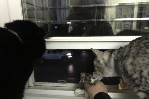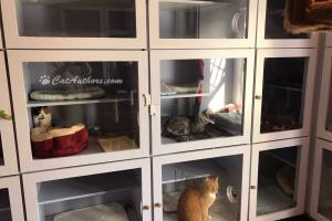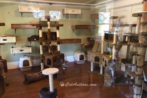 The hoomans let the four of us out of our module for a few hours every day. I admit, I went crazy. I raced 'round the room & up & down those cat trees. The hoomans told Meowmuh they'd never seen anything like it. Meowmuh said: "That's Spirit." The only problem was, the hoomans didn't feed us our food so we all got sick. Gracee didn't eat for a week. But we're OK now.