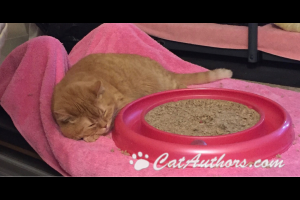 Play, watch out the windows 'n doors, eat, & sleep. So far today, I played, I watched, I ate & now I sleep. It's what cats do. We sleep 16 - 18 hours/day. All of that twistin' & turnin' playin' "Circles" plum wore me out, if you know what I mean. I couldn't do one more circle 'round that track so I "crashed," guess you can see that. Be sure & watch my video next.