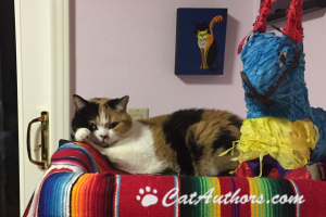 OK OK. I've made peace with this little piñata. He can stay in the cat tree for now. He says he's lonely. He came from Dino's Discount Party Supply--that super party store in San Fernando. Meowmuh says Dino's has everything & they are very nice. Happy Cinco Day to all you two & four- legged critters out there.
