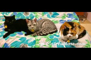 What? My mom is Sophee's mom too? You're pullin' my paw, right? We don't look or act alike. That's hard to believe! But that must be why folks are always sayin:' "You look just like your dad!" They say I have his floofy orange coat. But I AM a year older than Sophee. Anyway, wishin' a late happy mom's day to mine, hers & yours.