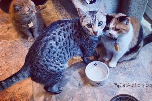 Yummm. No time for meows or yowls now. Too busy chowin' down if you know what I mean. Oh, yeah. Thanks, Mom. And thanks to all you Moms out there that take care of us critters -- hooman and otherwise. Have a great Mom's day cause you know and we know -- you have earned it!!
