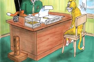 Our hooman saw this cartoon & thought it was purrfect for our blog. She had to pay for it -- or it could be a copywrong issue -- no, I mean a copyright issue. The cartoon's text at the bottom of the cartoon might not be visible due to pixels or whatever. So, I'll 'splain it to ya'. The Accountant is telling his patient, I mean client: "Mr. Reynolds, you can't count your litter box as a deduction just because you do your business there." Be sure & read our hooman's article: "CATS: COSTS & -- DEDUCTIONS?"