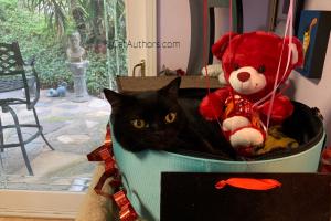 Wow! This day before Valentine’s Day has been exhausting! Teddy bears, hearts, bah-loons, ribbons—I’m plum wore out if you see what I’m sayin’. I need to get some serious sleep time in so I’ll be all handsome for tomorrow — Valentine’s Day. If the neighbor’s cats don’t come over, I’m gonna’ call Auntie Rika’s cats — Lucy & Mikey. They’ll be my Valentines furr shure! Have a fun day.