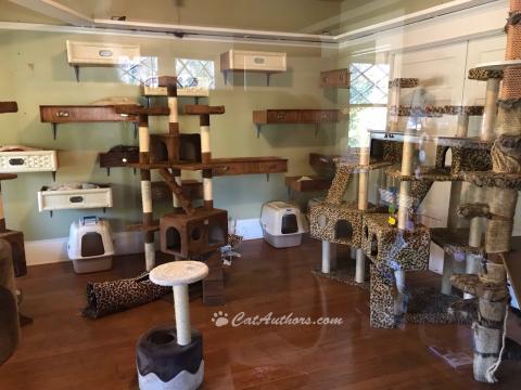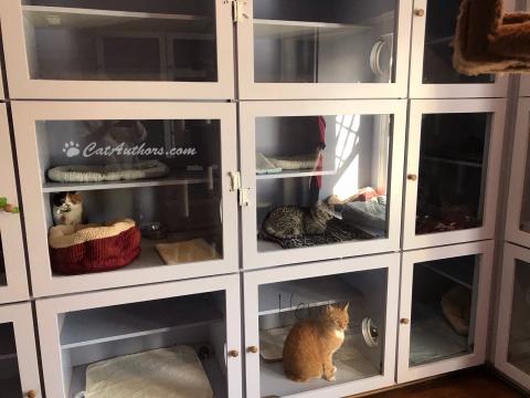 The hoomans let the four of us out of our module for a few hours every day. I admit, I went crazy. I raced 'round the room & up & down those cat trees. The hoomans told Meowmuh they'd never seen anything like it. Meowmuh said: "That's Spirit." The only problem was, the hoomans didn't feed us our food so we all got sick. Gracee didn't eat for a week.