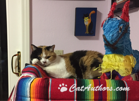 OK OK. I've made peace with this little piñata. He can stay in the cat tree for now. He says he's lonely. He came from Dino's Discount Party Supply--that super party store in San Fernando. Meowmuh says Dino's has everything & they are very nice. Happy Cinco Day to all you two & four- legged critters out there.