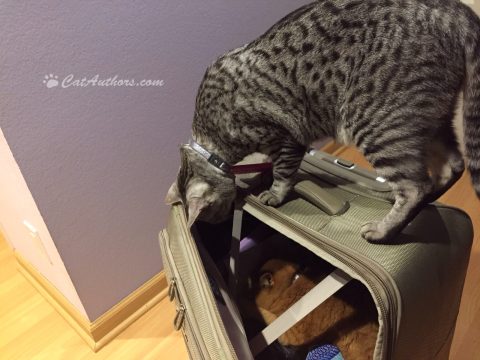 Gracee found our cat toys!! Meowmuh put them in a zippered pocket. Gracee's gonna' dig 'em out. Gracee, are there enough down there for all of us? Hurry up, Gracee, hurry up!