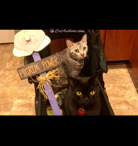SPIRIT: What's a pilgrim? INKEE: a traveler in foreign lands. SPIRIT: I was born in Kansas so I'm a pilgrim. INKEE: Kansas is a state, not a foreign country. SPIRIT: I'm an Egyptian Mau, I'm from Egypt--a foreign country. INKEE: Sigh. I'm a Scottish Fold so I must be from Scotland. Happy Thanksgiving to all you pilgrims out there!