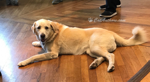 This is Molly--a sweet girl--the other photo class model. Meowmuh said she must be older because her muzzle was grey, She didn't want to play with any toys--she just wanted to be petted. Seeing all the people made her really happy. Everyone gave her pets & belly rubs. Meowmuh's friends, Susan & Jim, had a big yellow dog named Molly so this Molly was special. She got lots of pets from Meowmuh fur shure!