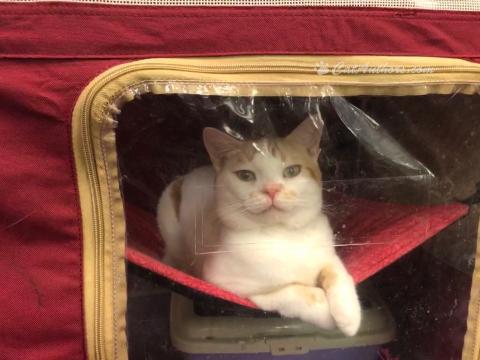 Meowmuh isn't sure about the breed of this cat. It is waiting so patiently to be judged. It didn't mind having it's pic taken -- even struck a pose for the pic. This is Meowmuh's first cat show so she was fascinated. We told her not to ask about any new kittens. Did I/we want her to bring any more cats home? NO, NO, NO.