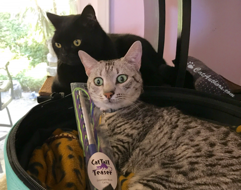 Spirit: What does 'TEASE' mean? Inkee-Bear: It means to 'tantalize by arousing curiosity.' So, the 'CatTail TEASER' is a purr-dee purr-fect toy for us cats cause, as all 2 & 4-legged critters know, we cats are VERY curious. Yes, indeedy. Spirit: If you don't believe us, just watch the GIF & VIDEO of Gracee & Sophee. Their curiosity has 'em jumpin' & pouncin!! Disclaimer: We received no compensation for posting this product. We just love it!