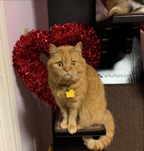 What’s up with all this red stuff, hearts, teddy bears, bah-loons? I’m sittin’ in front of a big heart at this very moment. Bigger than mine furr shure. Bigger than my hooman — I’m certain of that. We all have good hearts if you get my drift so we’ll all be your Valentine. Think of us & you’ll have a super Valentine’s Day!!