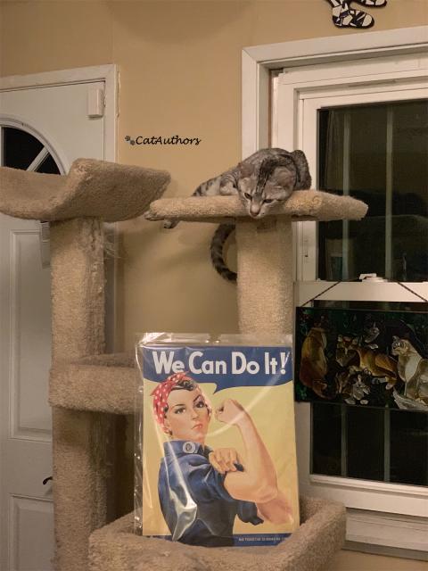 We're honoring Rosie the Riveter this Labor Day. See her below me? An American icon, Rosie represents women who joined the workforce in the 1940's to continue the work of manufacturing war machines when our men were drafted to fight WW II. Her iconic image, first painted by Norman Rockwell, signified the new role of women in the workforce -- resplendent & beautiful in her red bandana and red lipstick, wearing that determined expression while flexing her bicep and declaring: "We Can Do It!"