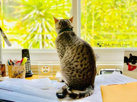 Just 'cause I'm sittin' on my hooman's tax receipts, you might think that I'm bothering or 'taxing' her. But I'm not. I'm tryin' to help her stay calm, cool & collected. She just said: "OK, Spirit. No catio this year -- the possibility of getting the usual/any tax return is diminishing. Sorry, little guy." That's depressing. She knows how I love to go outdoors.