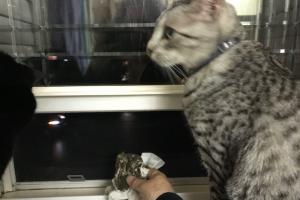7 AM: We pop out of the thick smoke. It’s daylight! Who knew? All streets in and out of my neighborhood are closed off. Police direct us to the only way out – the on-ramp to the 210 Freeway. It’s rush hour. Drivers are slowing to look at the “interesting” smoke and flames. It’s surreal. They’re driving past MY neighborhood, through MY world. They don’t have to worry. They aren’t exhausted from loading their cars. Their animals are safe at their homes. We’re fleeing our home. The cats know that this isn’t the usual trip to the vet. They usually talk and complain but today they’re quiet, no yowls, not even a meow. We settle the cats into Rika’s extra bedroom. Spirit paces. The other three crouch like statues in and near their carriers.