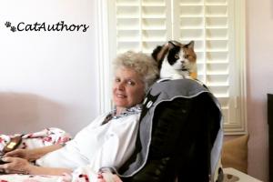 No, I didn't "take over" our dining room chair like my hooman thinks I did. It's called "sharing." I'm sharing the chair with with our friend and house guest, Muriel, at our dining room table. It's fun to sit with hoomans. Muriel has a nice soft voice. She & her husband, Lee, gave us lots of pets. Since when do cats not like attention? Know what I mean? Muriel even gave our hooman an idea on a creepy Halloween story. And, trust me, it turned out creepy!