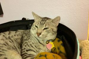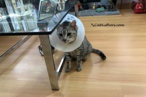 Can you believe this? A neck cone? For a mosquito bite? Yes, I scratched it even after Meowmuh treated it from the cat emergency first aid kit. She told me to stop but I couldn't. How do you not scratch an itch? I scratched 'til it bled. So into the carrier, to the vet, got a shot, an antibiotic cream & THIS! A friggin' cone! My siblings act like's it's a big deal. I'll show them. I can do anything I want to. At least I hope I can.