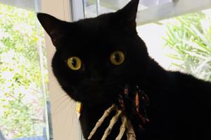 Black Cat apree-she-a -shun day? Oct. 27? Feel free to appreciate me. Here's some pawsomly purrfect suggestions: Treats, letting me finish any morsel of food left by the other cats, a nap in the stroller, laser game, no swats or hisses from Gracee, and curling up next to my hooman if & when she ever takes a break or gets on the computer. I'm open to suggestions. Here's a shout-out to all you black felines out there.