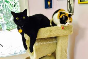 Meow to all you 2-legged & 4-legged Dad's out there on this, your special day! If you didn't already know, Sophee & I have the same dad, Mr. Kool-Kat. We have his purr-sonality fur shure. We're laid-back but playful. One big difference: I eat my food, even popcorn. In contrast, Sophee frequently doesn't eat much of her breakfast. As our Auntie Rika says, "Sophee just wants her coffee in the morning." But look out for din-din. Sophee gobbles that up! So, here's wishin' all you dads out there a day filled with hearty, scrumptious, taste-defying meals! (& snacks).