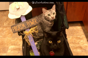 SPIRIT: What's a pilgrim? INKEE: a traveler in foreign lands. SPIRIT: I was born in Kansas so I'm a pilgrim. INKEE: Kansas is a state, not a foreign country. SPIRIT: I'm an Egyptian Mau, I'm from Egypt--a foreign country. INKEE: Sigh. I'm a Scottish Fold so I must be from Scotland. Happy Thanksgiving to all you pilgrims out there!