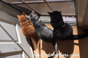 What? My mom is Sophee's mom too? You're pullin' my paw, right? We don't look or act alike. That's hard to believe! But that must be why folks are always sayin:' "You look just like your dad!" They say I have his floofy orange coat. But I AM a year older than Sophee. Anyway, wishin' a late happy mom's day to mine, hers & yours.