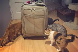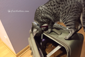 Meowmuh just returned from the BlogPaws and Cat Writers' Conference in South Carolina. She's been gone for 5 whole days!! We helped her pack, now we're gonna' help her unpack. But first, we gotta' check out her luggage. Meowmuh calls us her "sniff patrol."