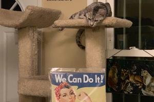 I'm the Inspector-In-Residence at this house. Nothing gets past me -- not on Labor Day, not on any day. My hooman tells other hoomans that I don't miss a thing. And, I don't. I fly up and down the stairs between floors at breakneck speed, jumping off the wall if I feel like it and if my hooman has moved a chair, a lamp, a bowl, a pillow, I know. That's just how I am. So, I'm keeping track of things for my hooman. Well, somebody's gotta do it. Right? And, yes, I like what I do so I'm purring.