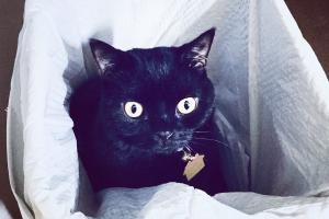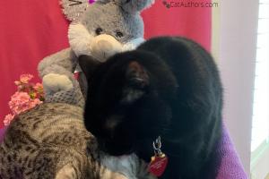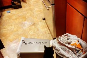 Oops. Our hooman was ready to take the trash out but she got this phone call and, well -- you can see what happened. I didn't do it. It was the girls. They don't always see whisker-to-whisker but when it comes to getting into things, they're a real team. But our hooman will take care of this just like she cleans up our spit ups, brushes us, cleans our litter boxes, feeds us, talks to us, plays with us, takes us to the vet -- you know -- she does what moms do. We appreciate Moms -- all of 'em!