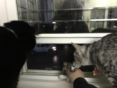 We're helpin' Meowmuh clean soot from the window sills. The wind & the fire made our house a mess. Meowmuh says we are just glad that we have a house to clean. So many others don't. How is their Christmas going to be? They might not even be with their hoomans. That's too hard.